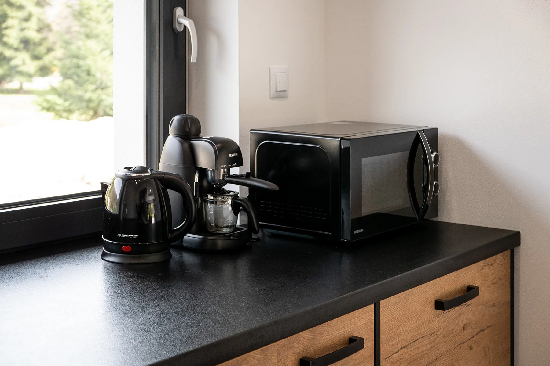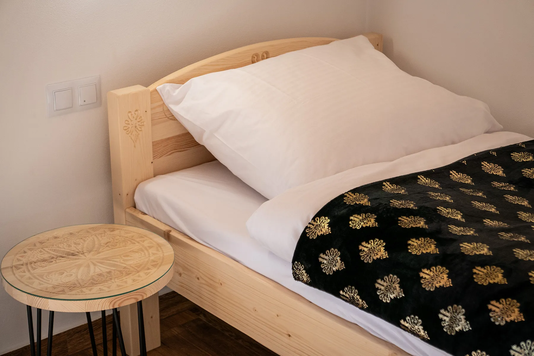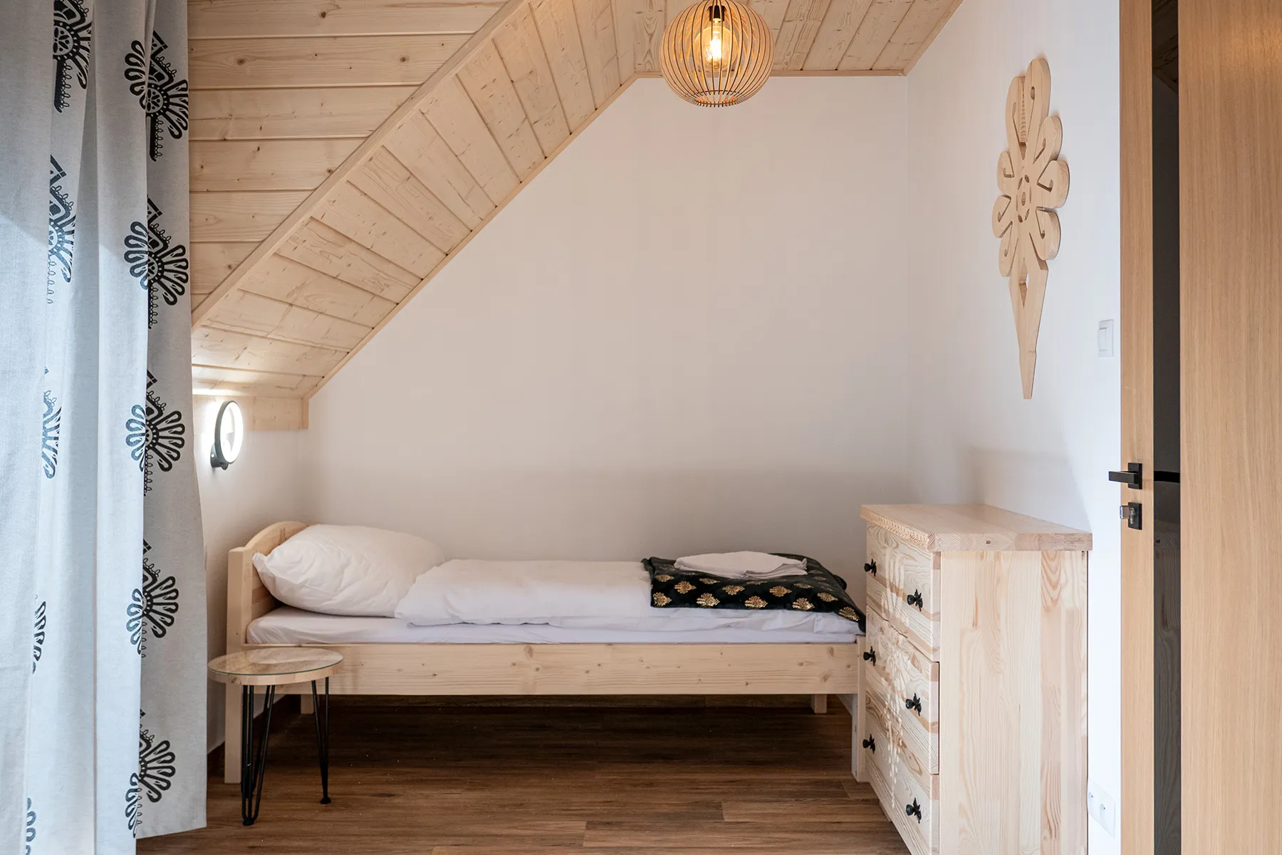 Każdy domek w Zacisze Deluxe został zaprojektowany tak, aby łączyć przytulność z funkcjonalnością. W salonie czeka wygodna sofa i duży telewizor, kuchnia jest wyposażona we wszystkie niezbędne sprzęty, a łazienki oferują komfortowe kabiny prysznicowe. W sypialniach dominują drewniane wykończenia i regionalne akcenty, które nadają wnętrzom ciepły, góralski klimat.